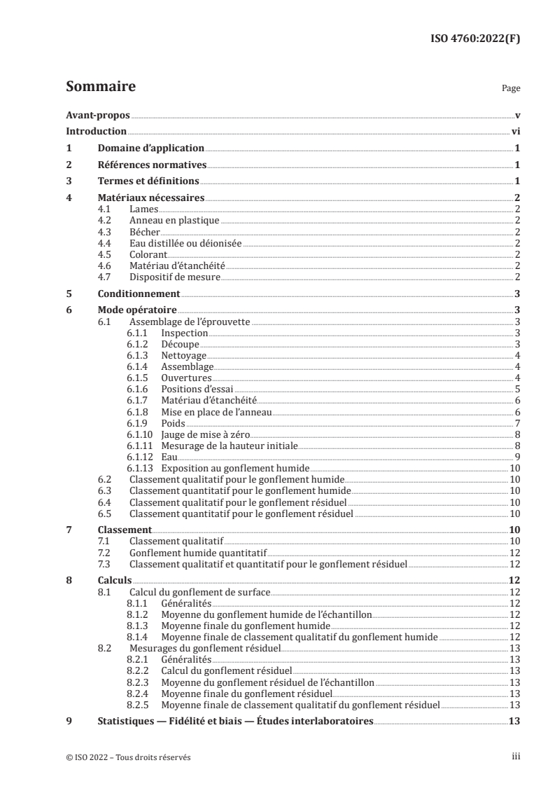 - Prepared by ISO/TC 219 (Floor coverings). The document contains informative annexes (worksheets, photo examples, joint water tightness guidance) and references prior industry methods (e.g., NALFA surface water guidance). ISO 4760:2022 includes no normative references and provides statistical precision/bias guidance for interlaboratory studies.
