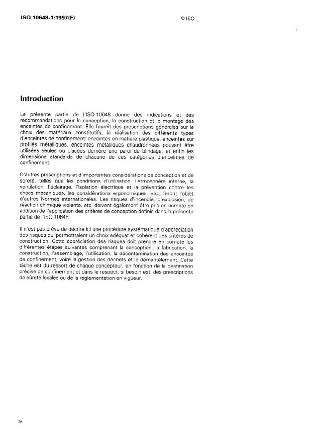 Keywords: ISO 10648-1, containment enclosures, design principles, glove box, metal-framed enclosure, plastic enclosure, seals, leak tightness, radiation protection.