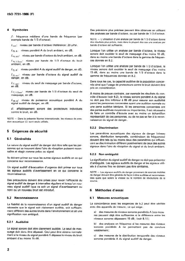 Descriptors : ergonomics, signals, acoustic signals, safety requirements, design, tests, definitions.