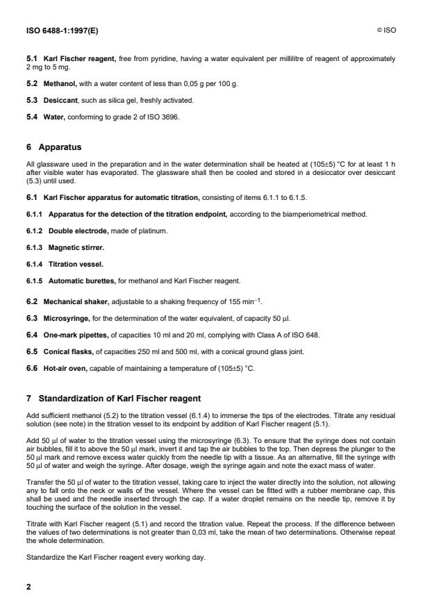 This part of ISO 6488 specifies a method for the determination of water content by the Karl Fischer method in