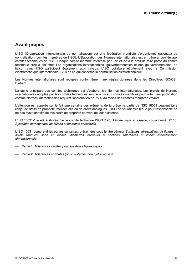 L'ISO 16031 comprend les parties suivantes, présentées sous le titre général Systèmes aérospatiaux de fluides —