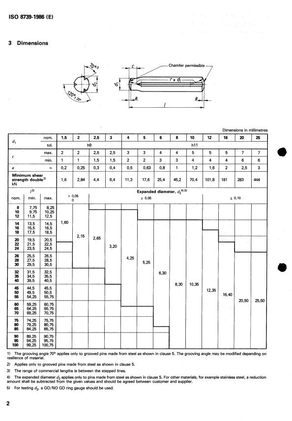 cause a positive locking fit when these grooved pins are forced into a drilled hole equal to the nominal diameter dl (see clause 4).