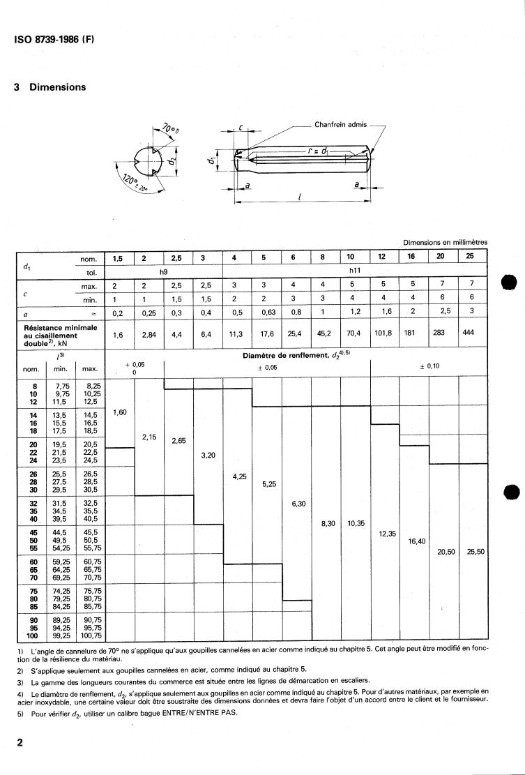 diamètre nominal de la goupille d, (voir chapitre 41.