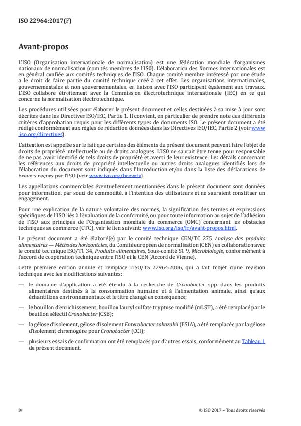 ISO 22964:2017 - Microbiologie de la chaîne alimentaire -- Méthode horizontale pour la recherche de Cronobacter spp.