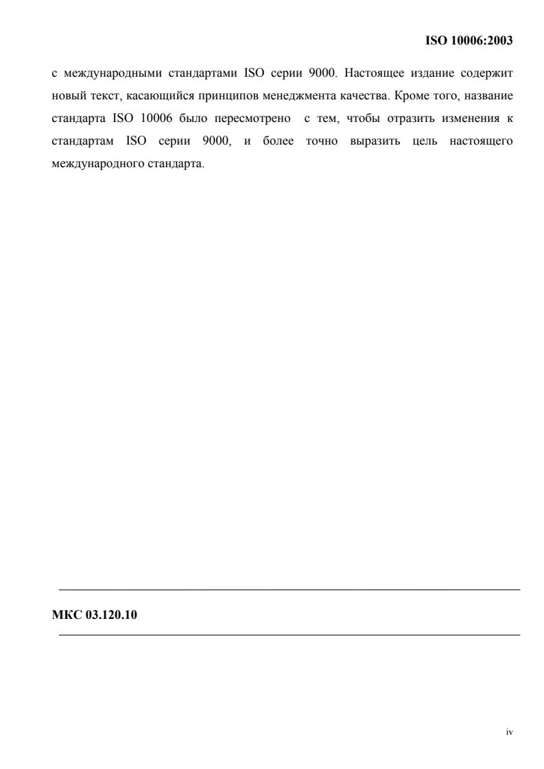 ISO 10006:2003 is a standard published by the International Organization for Standardization (ISO). Its full title is "Quality management systems — Guidelines for quality management in projects". This standard covers: ISO 10006:2003 gives guidance on the application of quality management in projects. It is applicable to projects of varying complexity, small or large, of short or long duration, in different environments, and irrespective of the kind of product or process involved. This can necessitate some tailoring of the guidance to suit a particular project. ISO 10006:2003 is not a guide to "project management" itself. Guidance on quality in project management processes is discussed in this International Standard. Guidance on quality in a project's product-related processes, and on the "process approach", is covered in ISO 9004. Since ISO 10006:2003 is a guidance document, it is not intended to be used for certification/registration purposes.