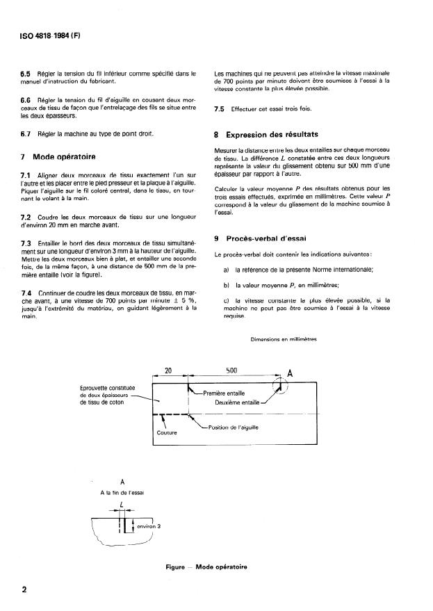 ISO 4818:1984 - Machines a coudre domestiques (ou de ménage) -- Détermination du glissement l'une sur l'autre de deux épaisseurs d'un meme matériau