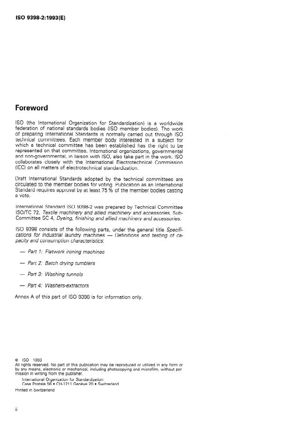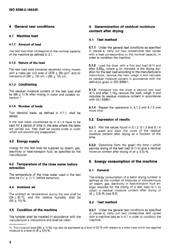 ISO 9398-2:1993 - Specifications for industrial laundry machines -- Definitions and testing of capacity and consumption characteristics