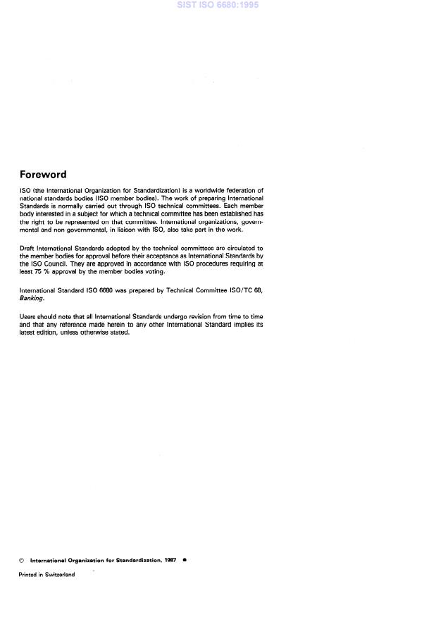 ISO 6680:1987 is classified under the following ICS (International Classification for Standards) categories: 03.060 - Finances. Banking. Monetary systems. Insurance. The ICS classification helps identify the subject area and facilitates finding related standards.