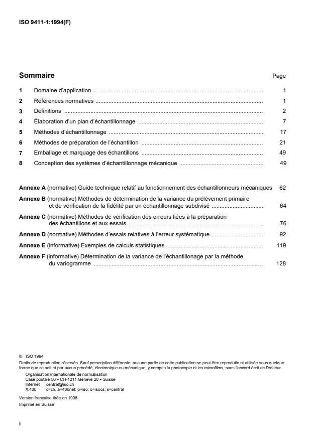 ISO 9411-1:1994 is a standard published by the International Organization for Standardization (ISO). Its full title is "Solid mineral fuels — Mechanical sampling from moving streams — Part 1: Coal". This standard covers: Provides recommended practices for the mechanical sampling of solid mineral fuels from moving streams. Applicable to the mechanical sampling and preparation of coal samples for the determination of total moisture, general analysis, including physical and chemical tests, and size analysis. Describes the basic requirements, together with typical examples of applications für guidance in the design, installation and operation of systems for mechanical sampling and mechanical preparation of samples.