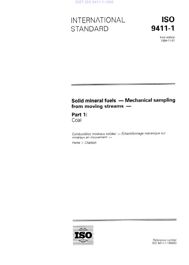 ISO 9411-1:1994 - Solid mineral fuels -- Mechanical sampling from moving streams