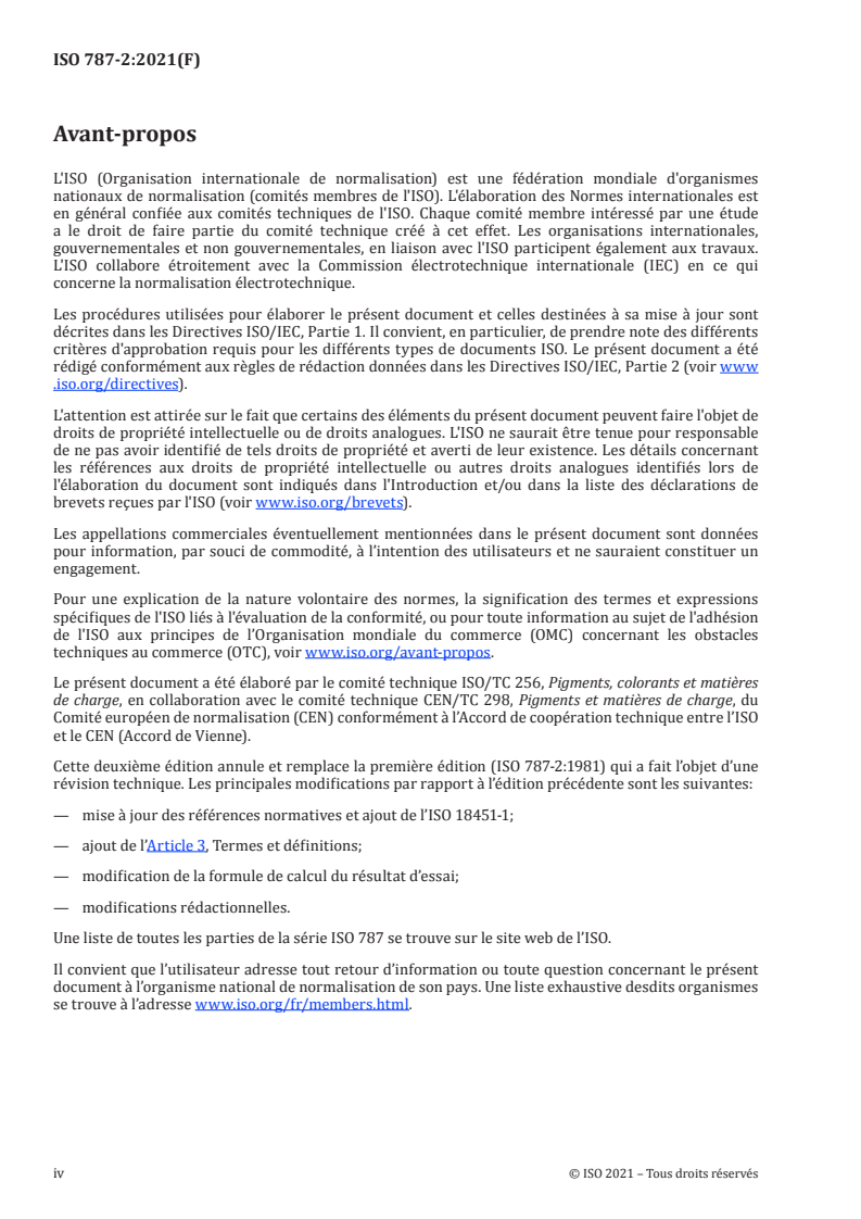 ISO 787-2:2021 - Méthodes générales d'essai des pigments et matières de charge — Partie 2: Détermination de la teneur en matière volatile à 105 °C Released:8/2/2021