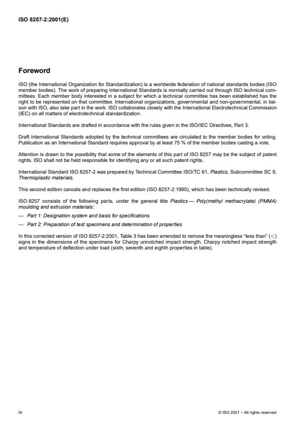 ISO 8257-2:2001 - Plastics -- Poly(methyl methacrylate) (PMMA) moulding and extrusion materials