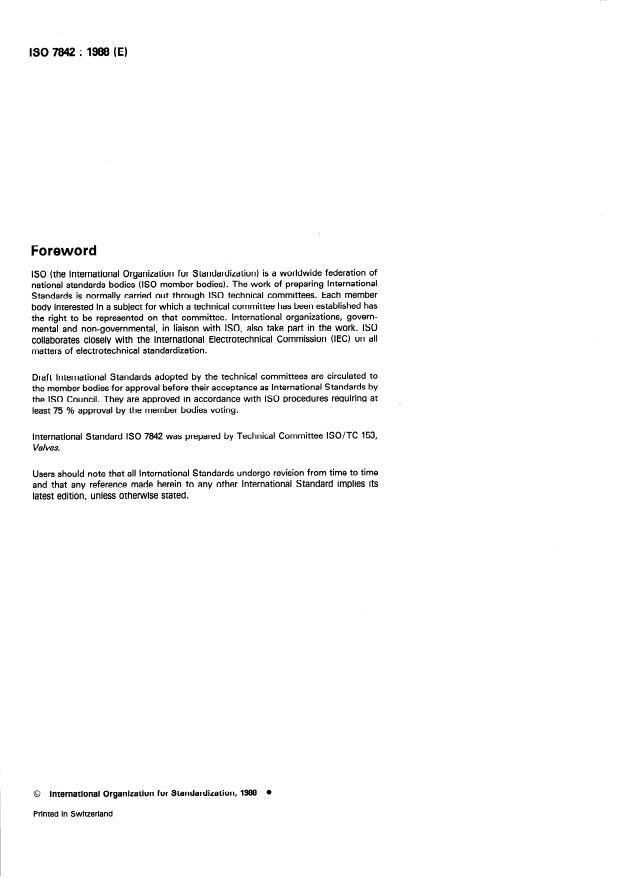 ISO 7842:1988 is classified under the following ICS (International Classification for Standards) categories: 23.060.01 - Valves in general. The ICS classification helps identify the subject area and facilitates finding related standards.
