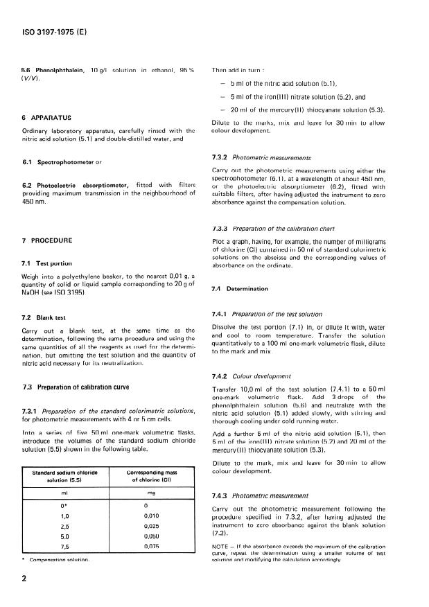 ISO 3197:1975 - Sodium hydroxide for industrial use -- Determination of chlorides content -- Photometric method