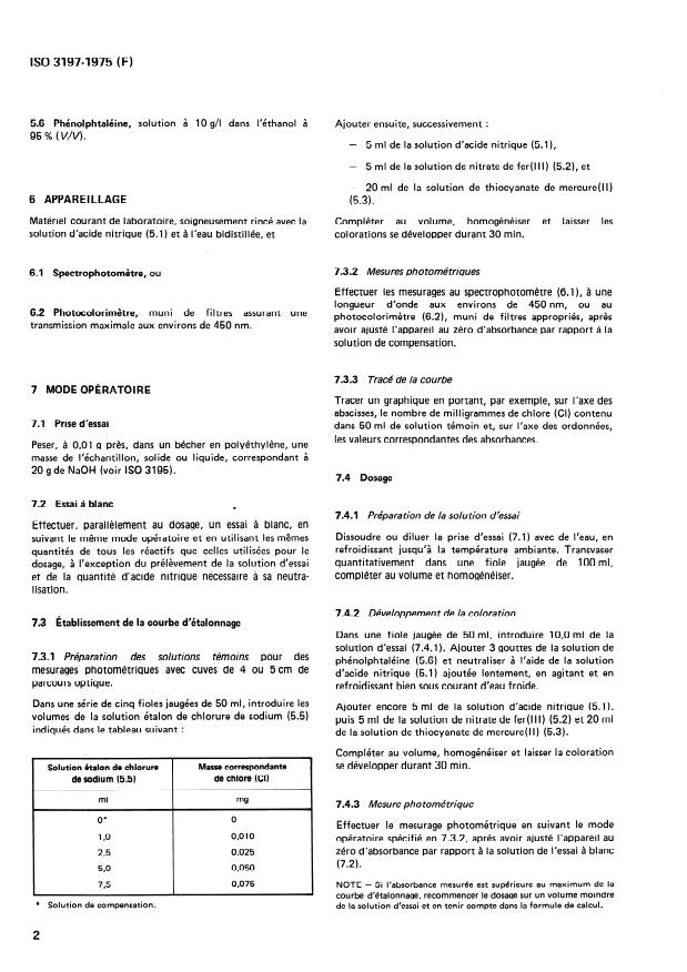 ISO 3197:1975 - Hydroxyde de sodium a usage industriel -- Dosage des chlorures -- Méthode photométrique