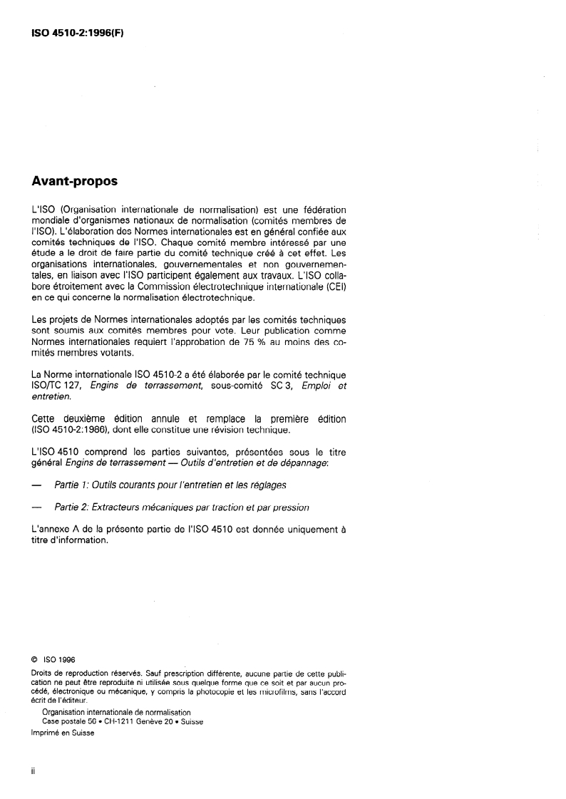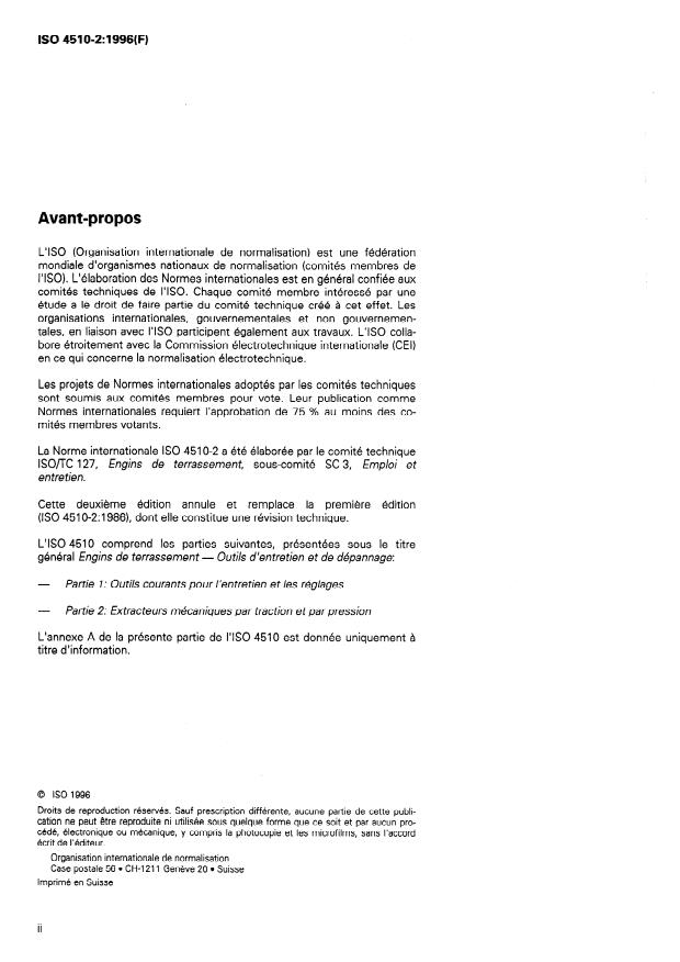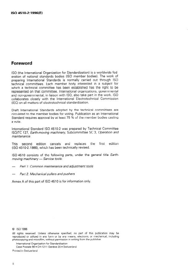 Keywords: ISO 4510-2:1996, earth‑moving machinery, service tools, mechanical pullers and pushers, pulling attachments, adaptors, maintenance, repair, dimensions.