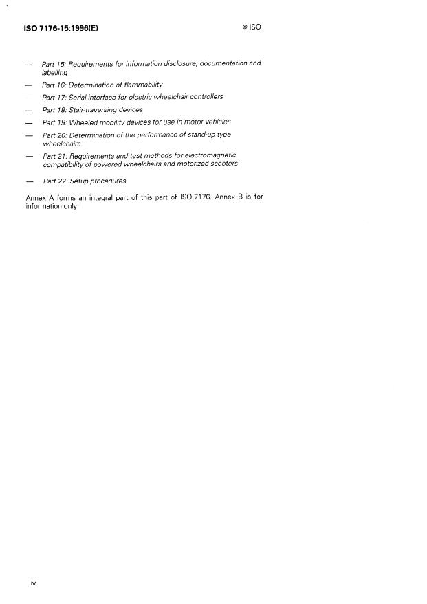 Keywords: ISO 7176-15, wheelchairs, information disclosure, documentation, labelling, specification sheets, user manual, service manual, test report, permanent labelling.
