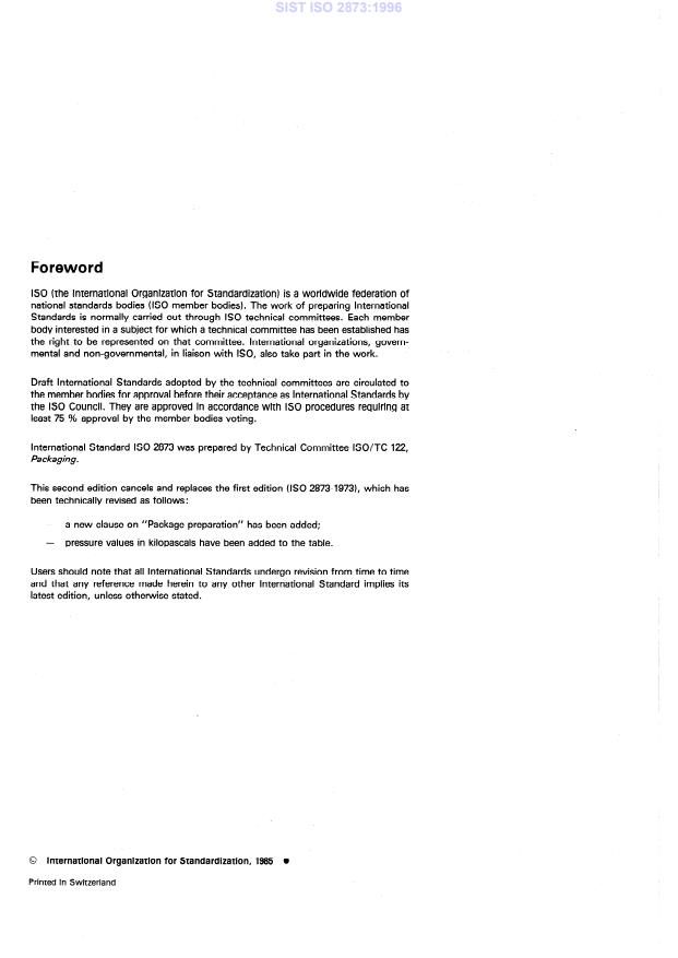 ISO 2873:2000 - Packaging — Complete, filled transport packages and unit loads — Low pressure test - Effective Date