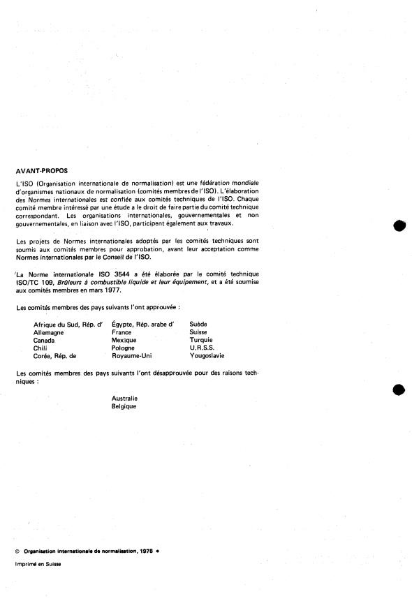 ISO 3544:1978 is a standard published by the International Organization for Standardization (ISO). Its full title is "Atomizing oil burners of the monobloc type — Safety times and safety control and monitoring devices". This standard covers: Atomizing oil burners of the monobloc type — Safety times and safety control and monitoring devices