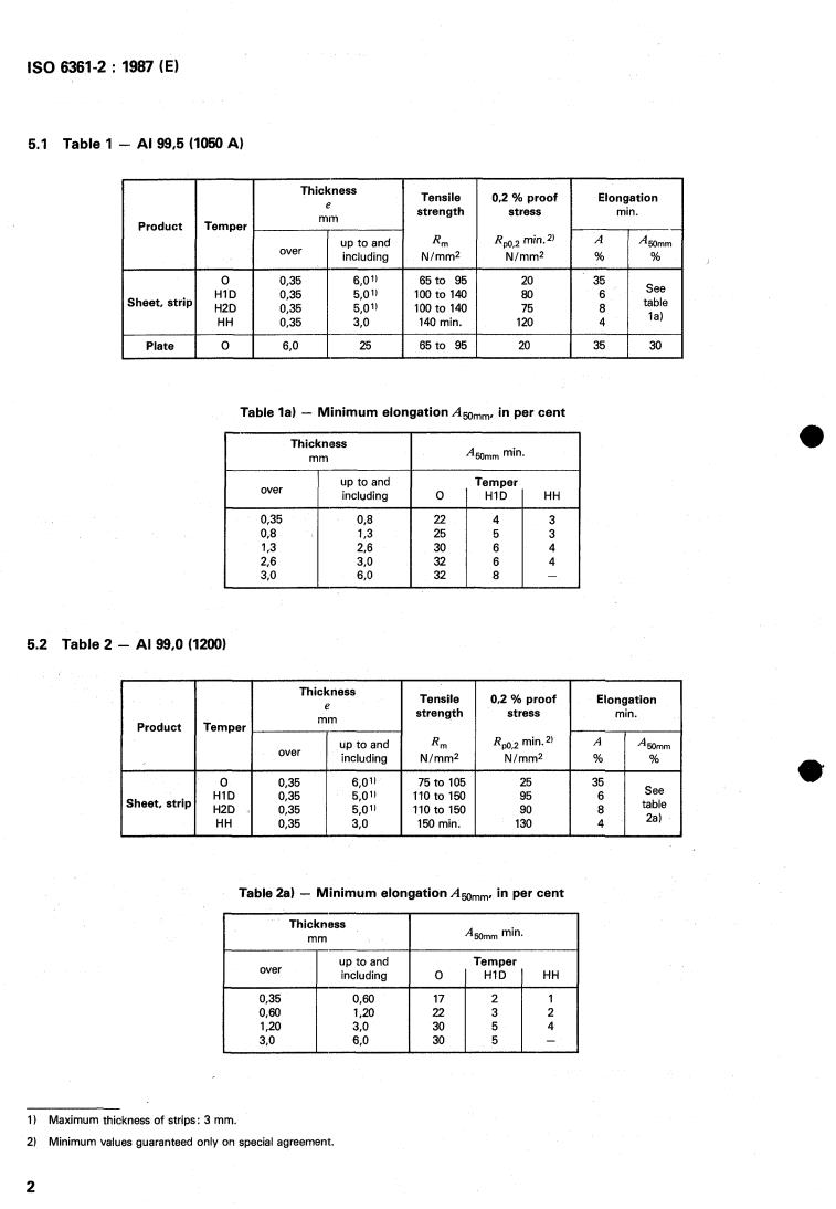 ISO 6361-2:1987 - Wrought aluminium and aluminium alloy sheets, strips and plates — Part 2: Mechanical properties Released:8/13/1987