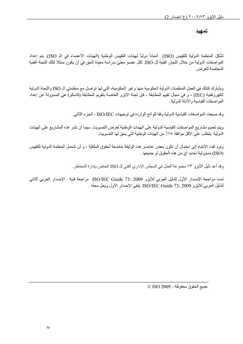 ISO Guide 73:2009 provides the definitions of generic terms related to risk management. It aims to encourage a mutual and consistent understanding of, and a coherent approach to, the description of activities relating to the management of risk, and the use of uniform risk management terminology in processes and frameworks dealing with the management of risk. ISO Guide 73:2009 is intended to be used by: those engaged in managing risks, those who are involved in activities of ISO and IEC, and developers of national or sector-specific standards, guides, procedures and codes of practice relating to the management of risk. For principles and guidelines on risk management, reference is made to ISO 31000:2009.