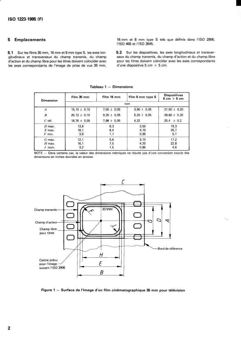 ISO 1223:1985 is a standard published by the International Organization for Standardization (ISO). Its full title is "Cinematography — Picture areas for motion- picture films and slides for television — Position and dimensions". This standard covers: Cinematography — Picture areas for motion- picture films and slides for television — Position and dimensions