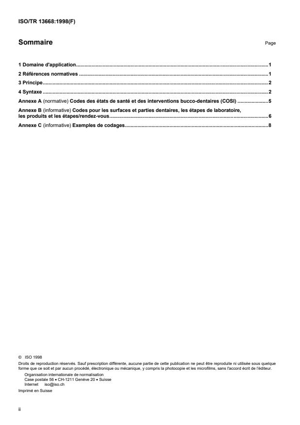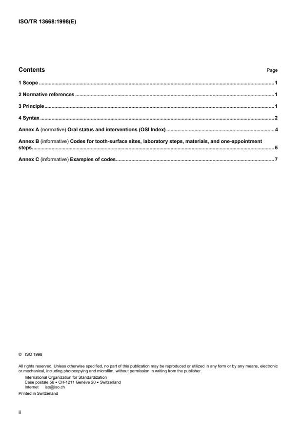 ISO/TR 13668:1998 - Codage numérique de l'état de santé et des interventions bucco-dentaires (COSI)