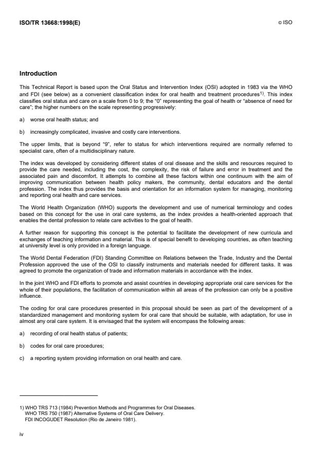 ISO/TR 13668:1998 - Digital coding of oral health and care