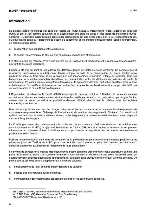 Le présent rapport technique est basé sur l'indice OSI (Oral Status & Interventions Index), adopté en 1983 par