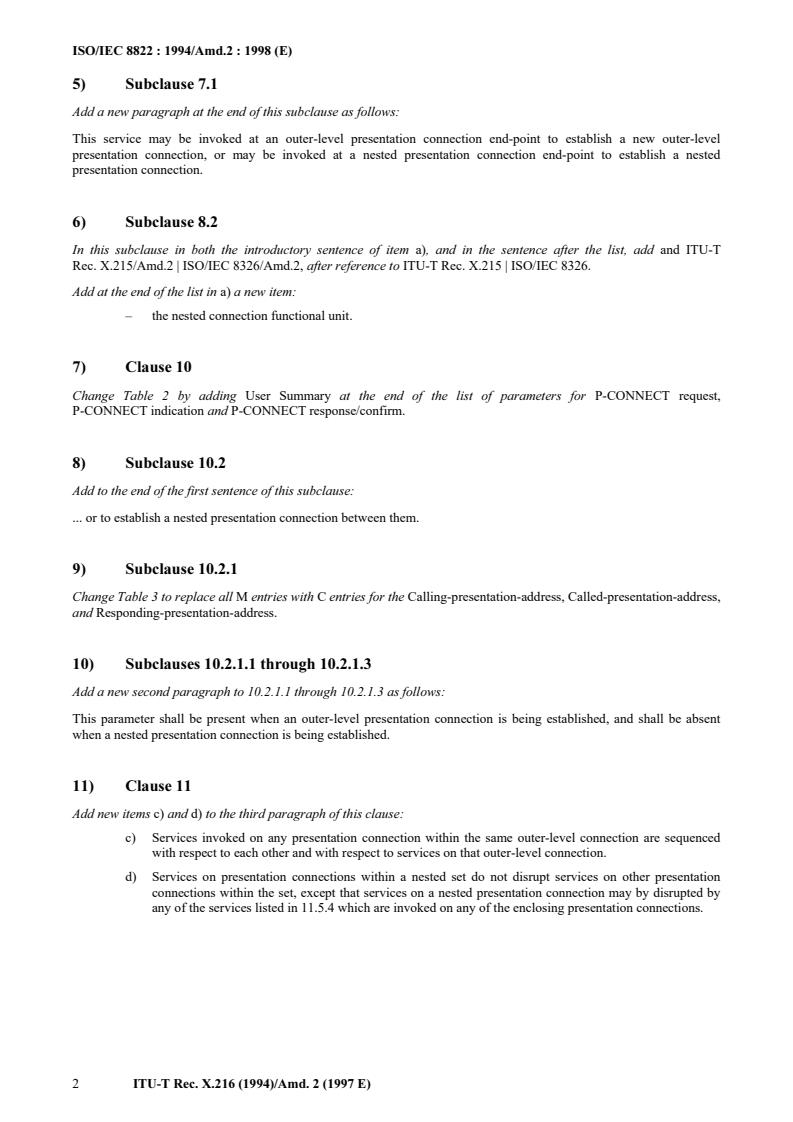 ISO/IEC 8822:1994/Amd 2:1998 - Information technology — Open Systems Interconnection — Presentation service definition — Amendment 2: Nested connections functional unit Released:2/17/2000