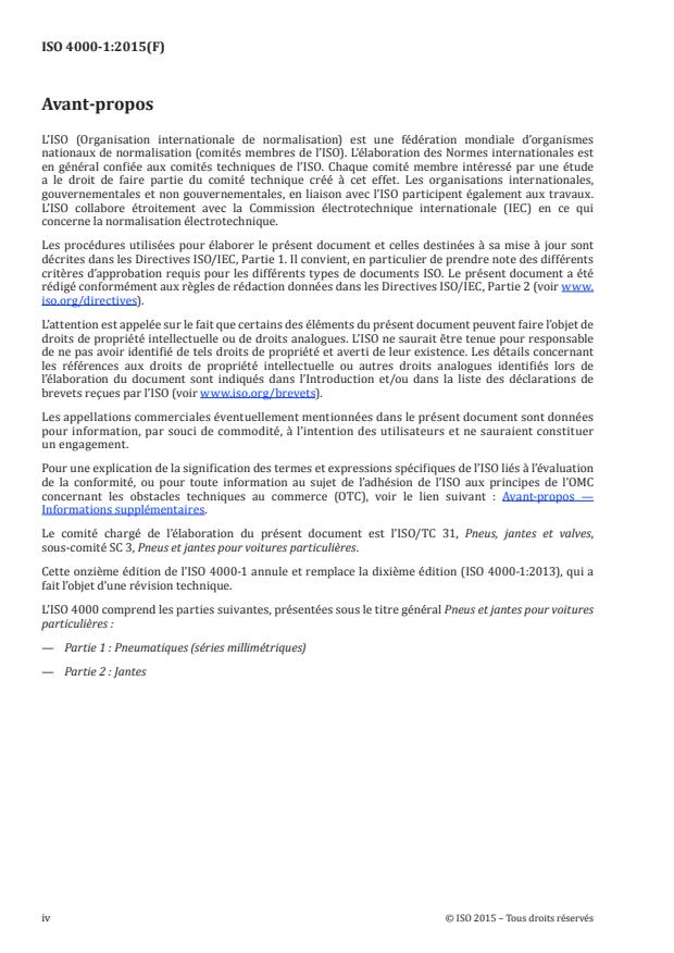 ISO 4000-1:2015 spécifie la désignation, les cotes et les indices de charge des pneumatiques de la série millimétrique destinés en priorité aux voitures particulières.