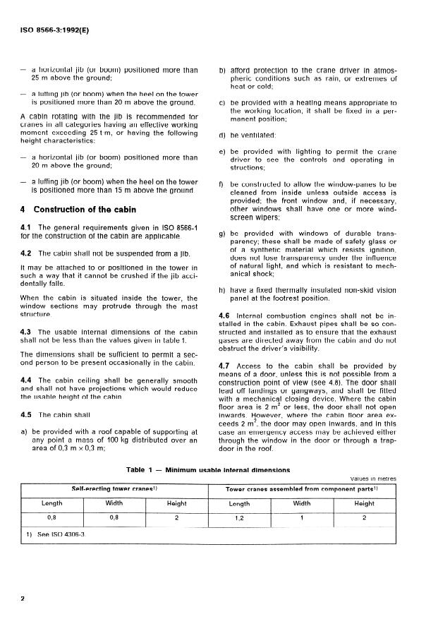 cabins for tower cranes, as defined in IS0 4306-3.