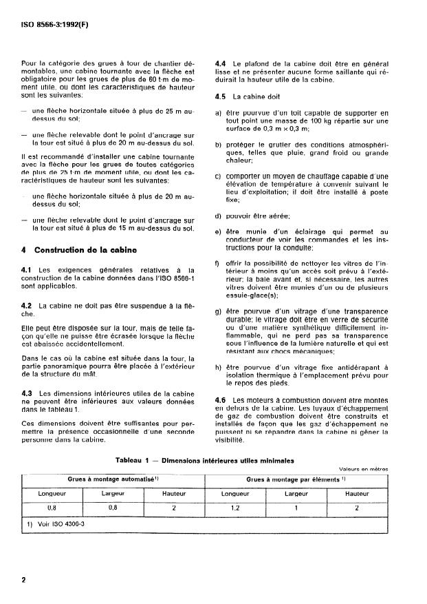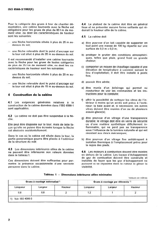 construction de la cabine données dans I’ISO 8566-l