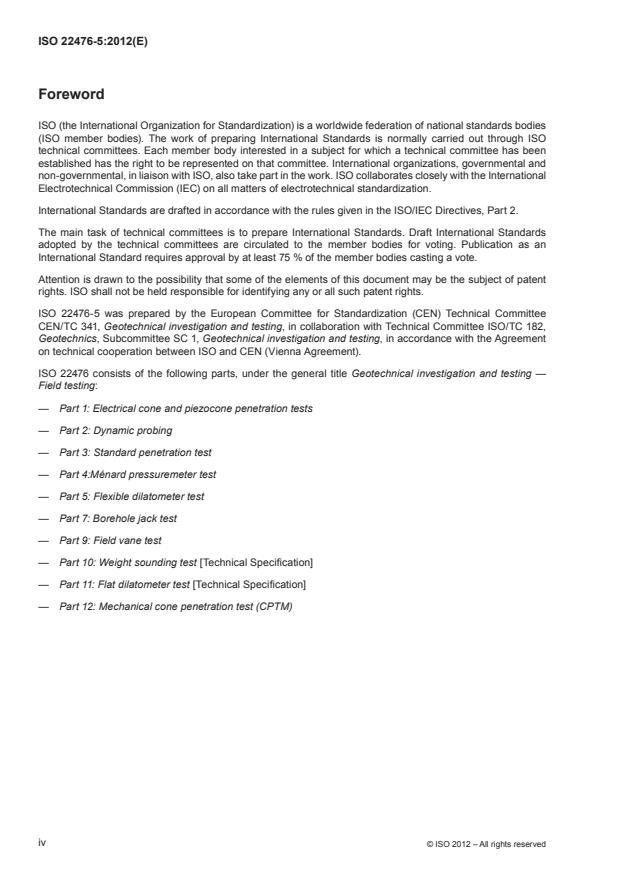 ISO 22476-5:2012 is a standard published by the International Organization for Standardization (ISO). Its full title is "Geotechnical investigation and testing — Field testing — Part 5: Flexible dilatometer test". This standard covers: ISO 22476-5:2012 specifies the equipment requirements, execution of and reporting on flexible dilatometer tests. ISO 22476-5:2012 is applicable to tests in ground stiff enough not to be adversely affected by the drilling operation. ISO 22476-5:2012 is applicable to four procedures for conducting a test with the flexible dilatometer. ISO 22476-5:2012 applies to tests performed up to 1 800 m depth. Testing can be conducted either on land or off-shore.