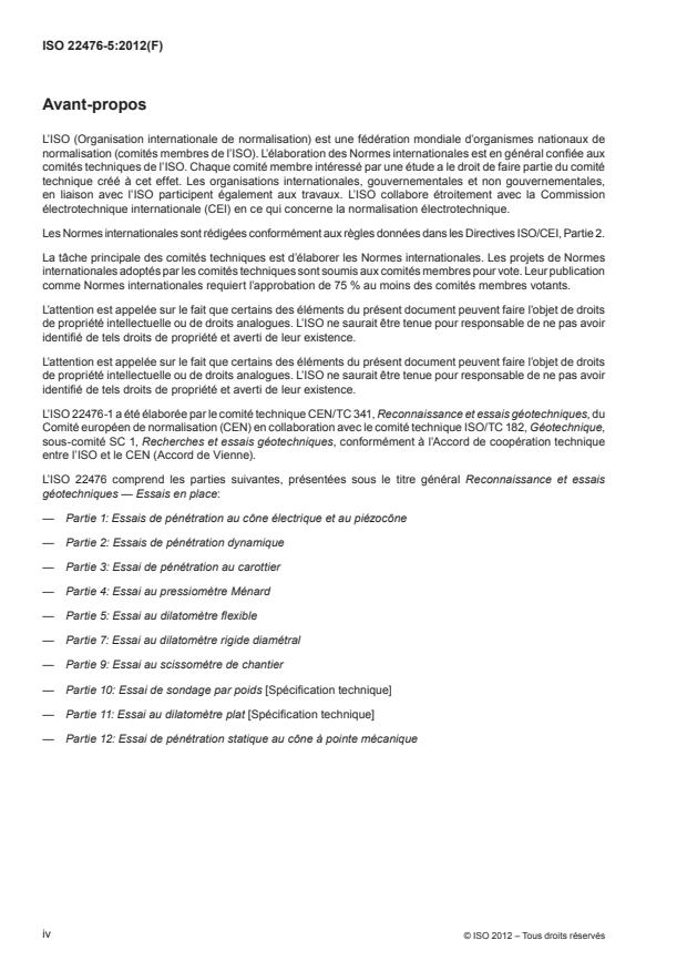 ISO 22476-5:2012 specifies the equipment requirements, execution of and reporting on flexible dilatometer tests. ISO 22476-5:2012 is applicable to tests in ground stiff enough not to be adversely affected by the drilling operation. ISO 22476-5:2012 is applicable to four procedures for conducting a test with the flexible dilatometer. ISO 22476-5:2012 applies to tests performed up to 1 800 m depth. Testing can be conducted either on land or off-shore.