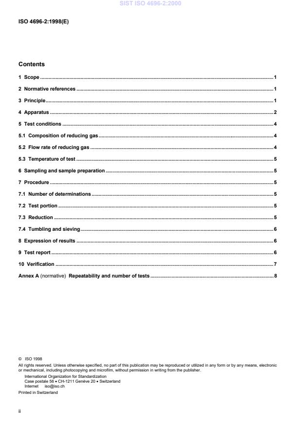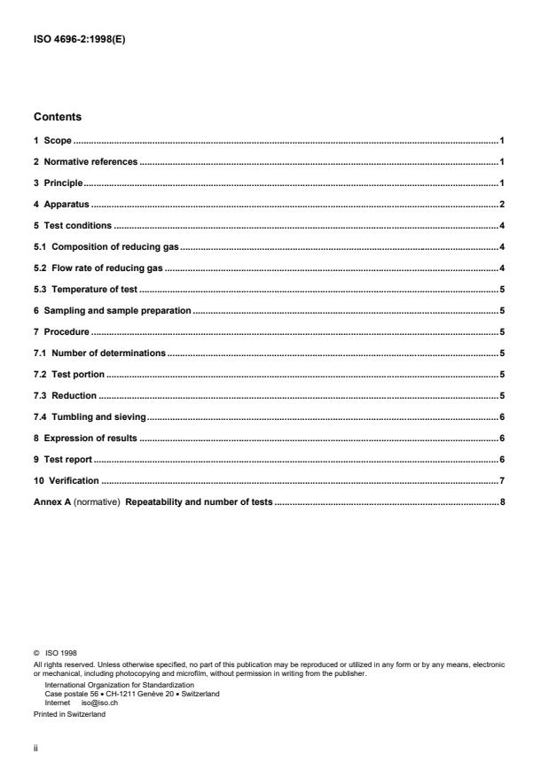 ISO 4696-2:1998 is a standard published by the International Organization for Standardization (ISO). Its full title is "Iron ores — Static test for low-temperature reduction-disintegration — Part 2: Reaction with CO". This standard covers: Iron ores — Static test for low-temperature reduction-disintegration — Part 2: Reaction with CO