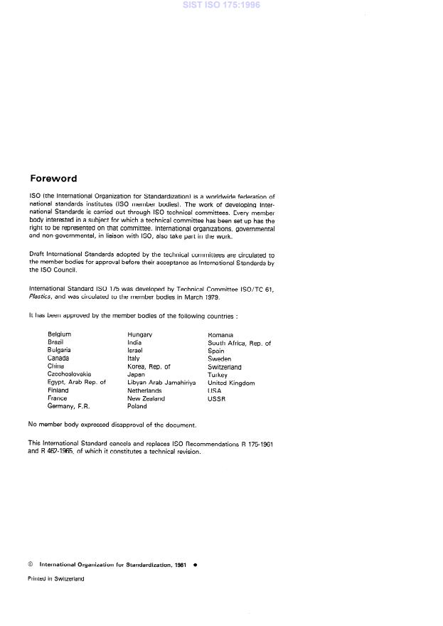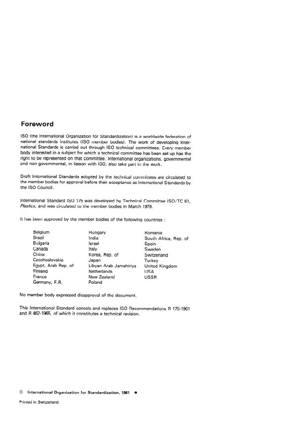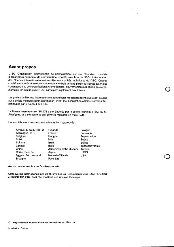 International Standard IS0 175 was developed by Technical Committee ISO/TC 61,