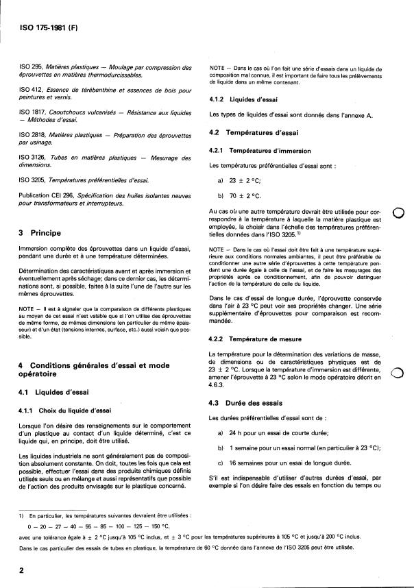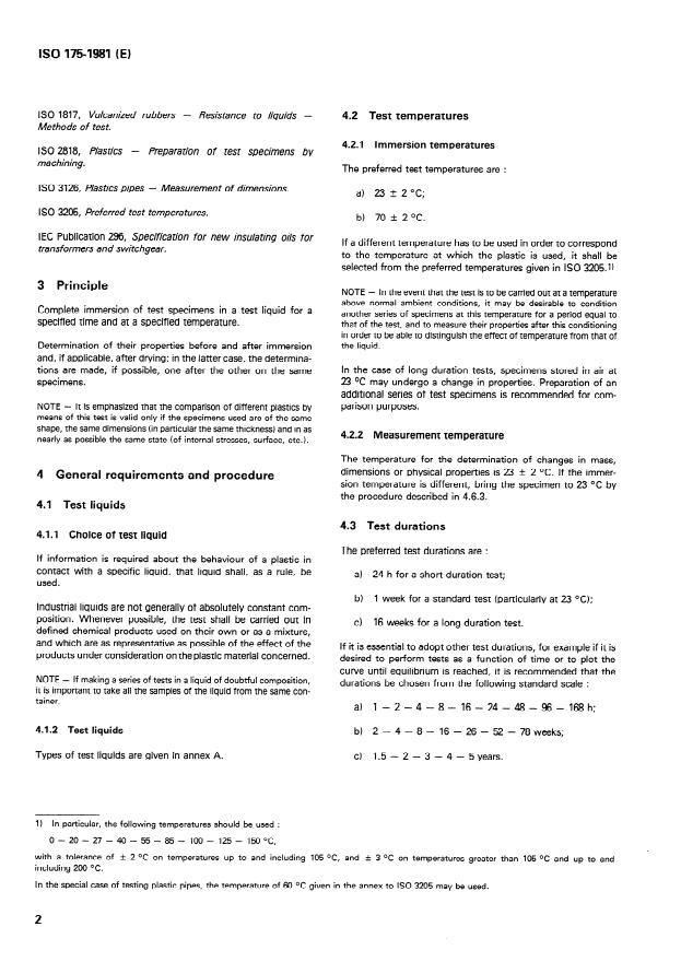ISO 175:1981 is a standard published by the International Organization for Standardization (ISO). Its full title is "Plastics — Determination of the effects of liquid chemicals, including water". This standard covers: Plastics — Determination of the effects of liquid chemicals, including water