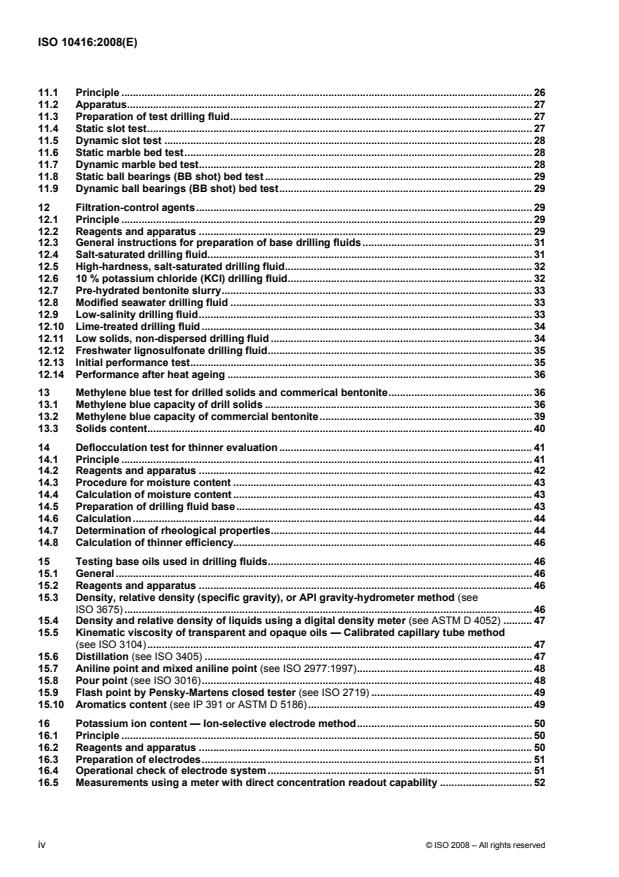 ISO 10416:2008 - Petroleum and natural gas industries - Drilling fluids - Laboratory testing - defines standard laboratory procedures for testing drilling-fluid materials and the physical, chemical and performance properties of drilling fluids. It applies to water‑based and oil‑based drilling fluids and to base or “make‑up” fluids. The standard provides test principles, required reagents and apparatus, sampling/preparation guidance, and calculation methods. It is not a field manual for drilling-fluid control, but it does give recommendations on agitation history and testing temperature, because these factors strongly affect drilling fluid properties.