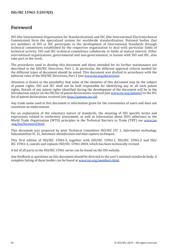 Keywords: ISO/IEC 15961-3:2019, RFID data constructs, AFI, data format, Object Identifier, UII, RFID for item management, DSFID, conformance, Registration Authority.
