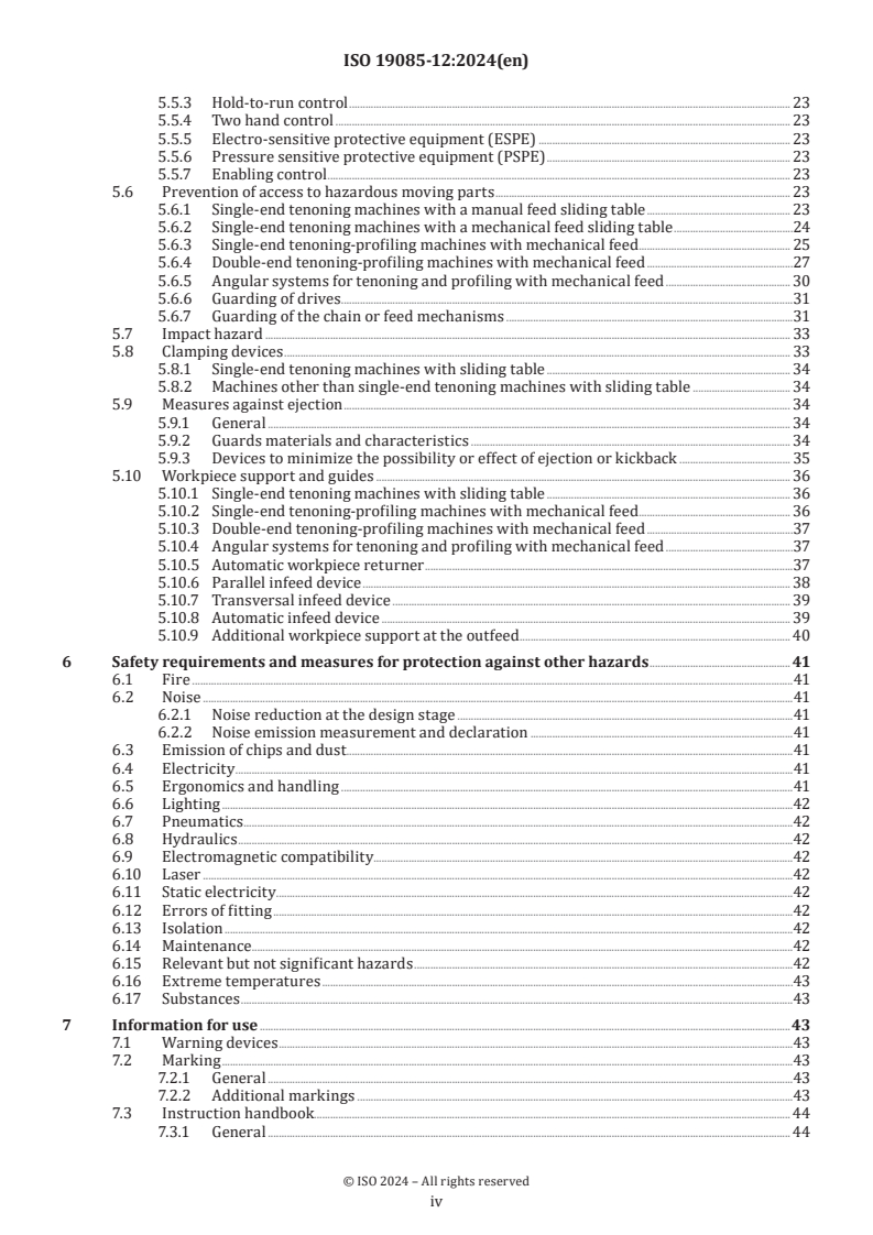 Keywords: ISO 19085-12:2024, tenoning-profiling machines, woodworking machine safety, machine safeguarding, control systems, noise and dust emissions, manufacturers compliance.