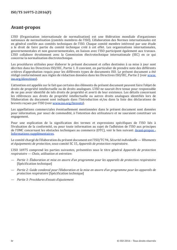 ISO/TS 16975-2:2016 - Appareils de protection respiratoire -- Choix, utilisation et entretien