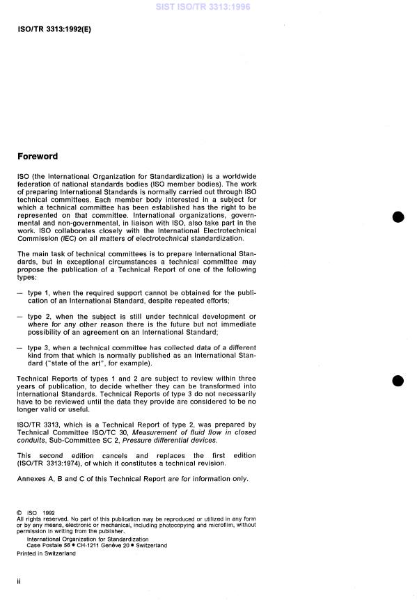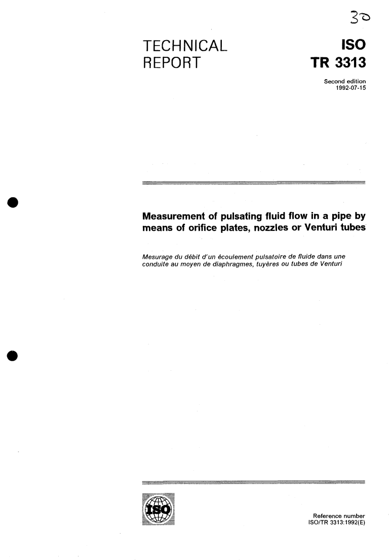 ISO/TR 3313:1992 is a technical report published by the International Organization for Standardization (ISO). Its full title is "Measurement of pulsating fluid flow in a pipe by means of orifice plates, nozzles or Venturi tubes". This standard covers: Measurement of pulsating fluid flow in a pipe by means of orifice plates, nozzles or Venturi tubes