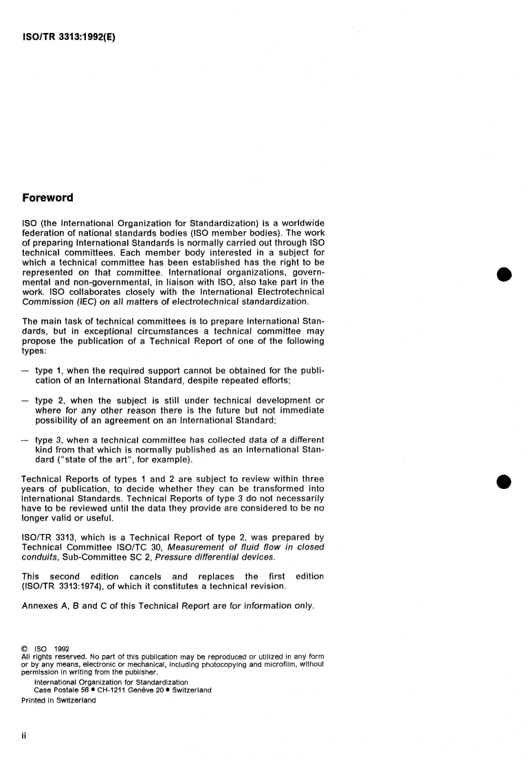 ISO/TR 3313, which is a Technical Report of type 2, was prepared by