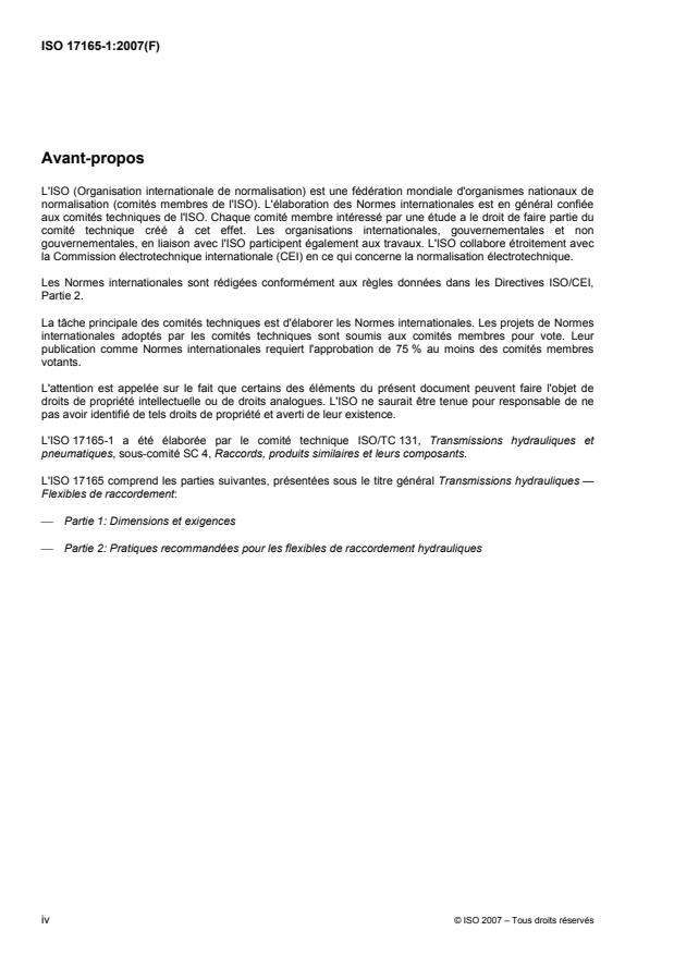 ISO 17165-1:2007 is a standard published by the International Organization for Standardization (ISO). Its full title is "Hydraulic fluid power - Hose assemblies - Part 1: Dimensions and requirements". This standard covers: ISO 17165-1:2007 specifies requirements for hose assemblies that are manufactured from hoses that conform to ISO 3949 and to all parts of ISO 1436, ISO 3862, ISO 4079 and ISO 11237 and hose fittings with elastomeric seals that conform to ISO 12151-1, ISO 12151-2, ISO 12151-3 and ISO 12151-6. ISO 17165-1:2007 contains information of the most important criteria for the selection of preferred types of hoses and hose fittings with elastomeric sealing for use in hydraulic fluid power applications.