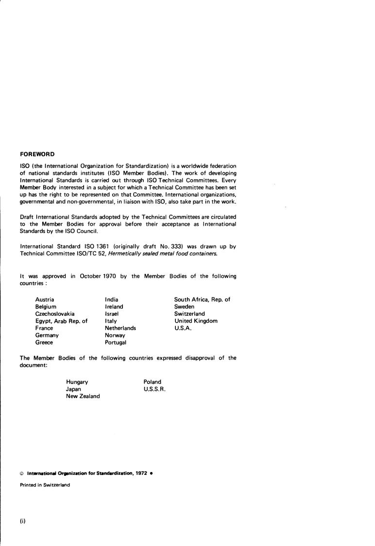 N UDC 621.798.144 Ref. No. IS0 1361-1972 (E)