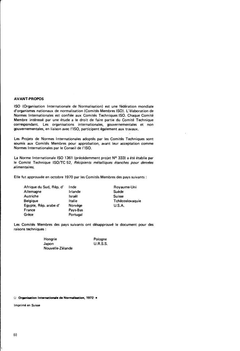 Réf. No : IS0 1361 -1972 (F)