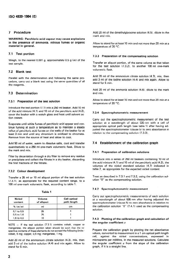 ISO 4939:1984 - Steel and cast iron -- Determination of nickel content -- Dimethylglyoxime spectrophotometric method