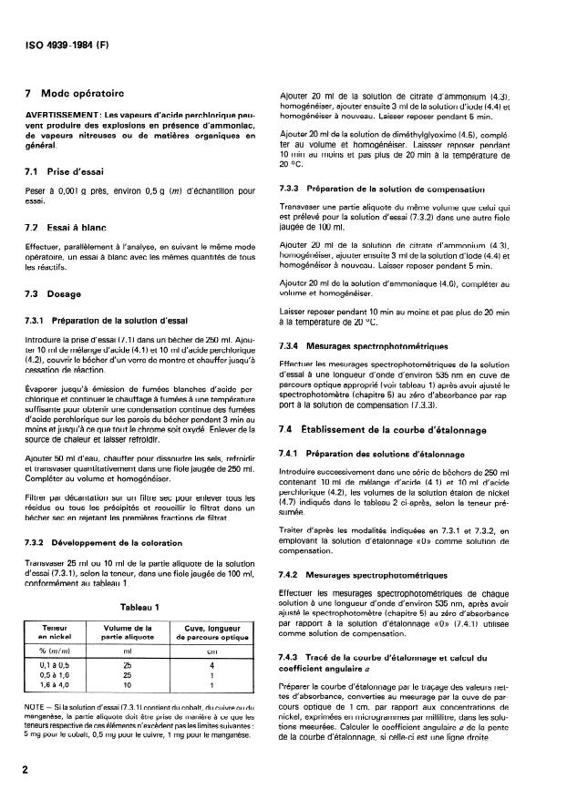 Aciers et fon tes - Dosage du nickel - Mthode spectrophotombtrique 2 la dimbth ylglyoxime
