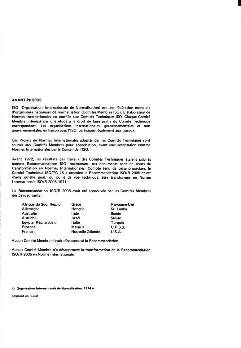 Comité Technique lSO/TC 45 a examiné la Recommandation ISO/R 2005 et est